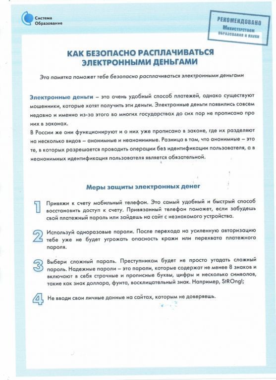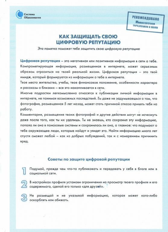 ИНФОРМАЦИОННАЯ ПАМЯТКА ДЛЯ ОБУЧАЮЩИХСЯ ДЛЯ РАЗМЕЩЕНИЯ НА ОФИЦИАЛЬНЫХ ИНТЕРНЕТ-РЕСУРСАХ