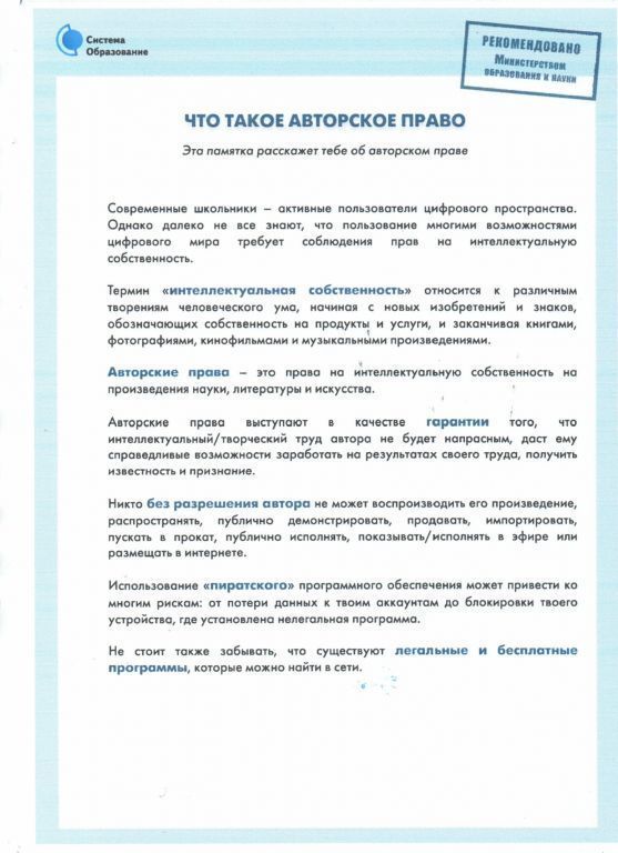 Современные школьники - активные пользователи цифрового пространства. Однако далеко не все знают, что пользование многими возможностями цифрового мира требует соблюдения прав на интеллектуальную собственность.